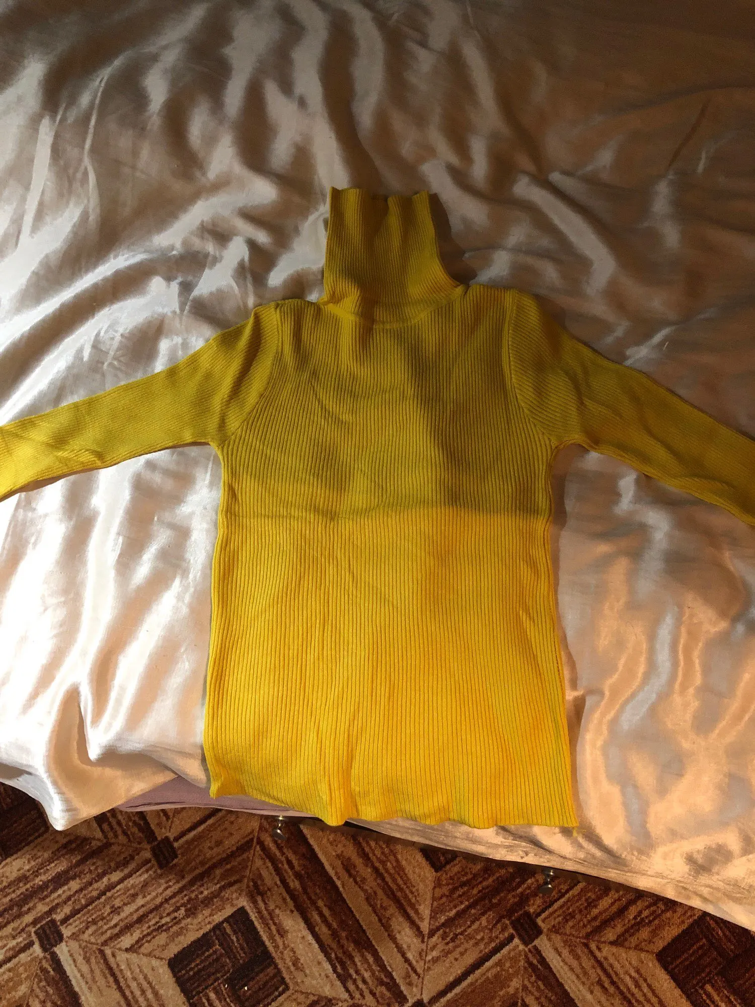 колір яскравіший ніж на фото ,але за такі гроші...якісь супер, тоненький , базовий гольф, мені сподобався ,розмір на 94-74-94 сидить супер