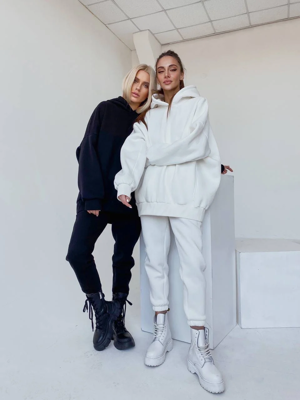 Женский флисовый спортивный костюм, осенне-зимние свободные костюмы...