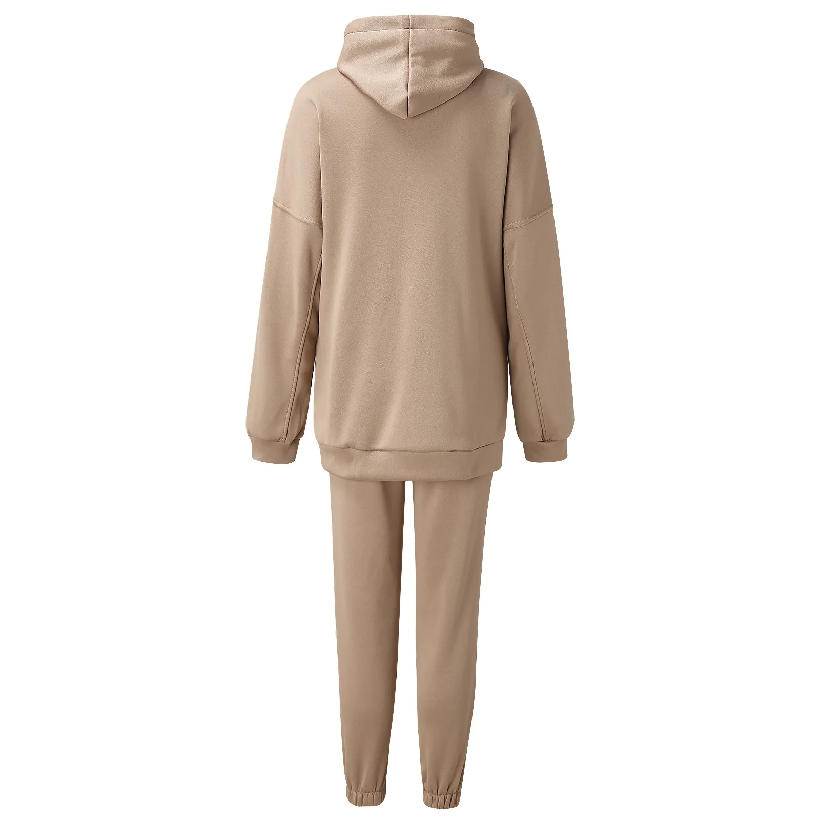 Модный женский спортивный костюм, толстовка с капюшоном и брюки с эластичным поясом, Осень-зима, комплект из двух предметов, Женский Повседневный свитшот, флисовый женский костюм