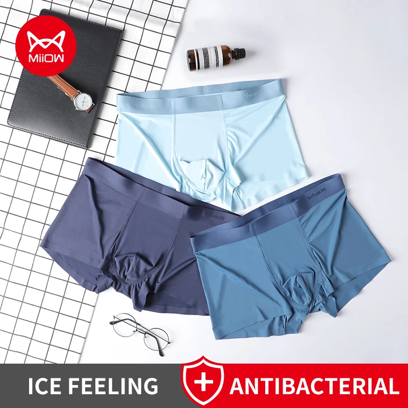 MiiOW, 3 шт., Бесшовное мужское нижнее белье-боксеры, ледяное шелко...