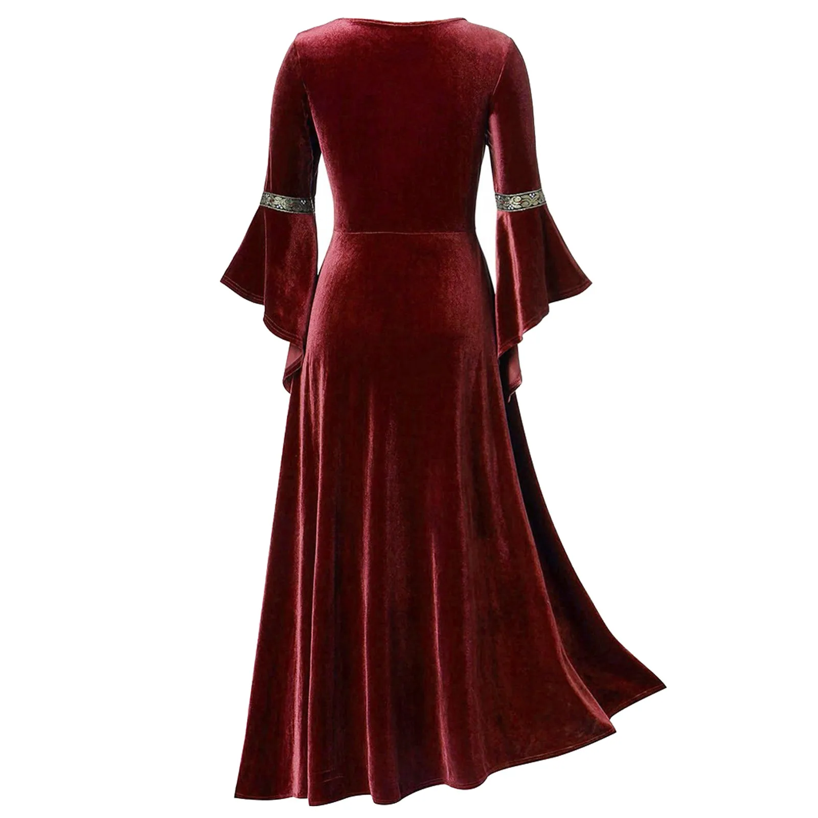 Женское винтажное Платье с расклешенными рукавами, Бандажное Платье макси в готическом средневековом стиле, Платье в стиле эпохи Возрождения и готики, Платье ведьмы