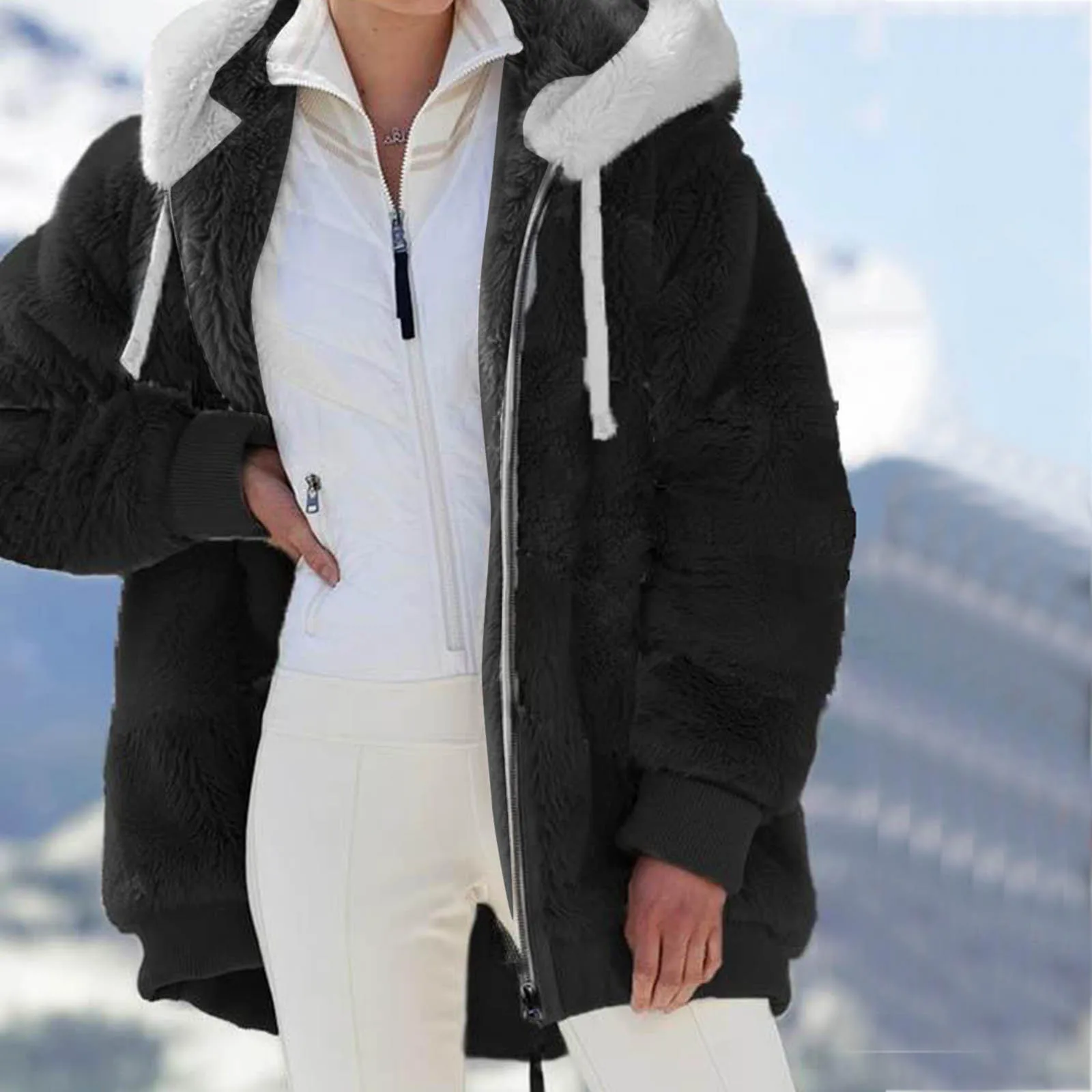 Женские плюшевые флисовые куртки с капюшоном, плюшевая парка с прос...