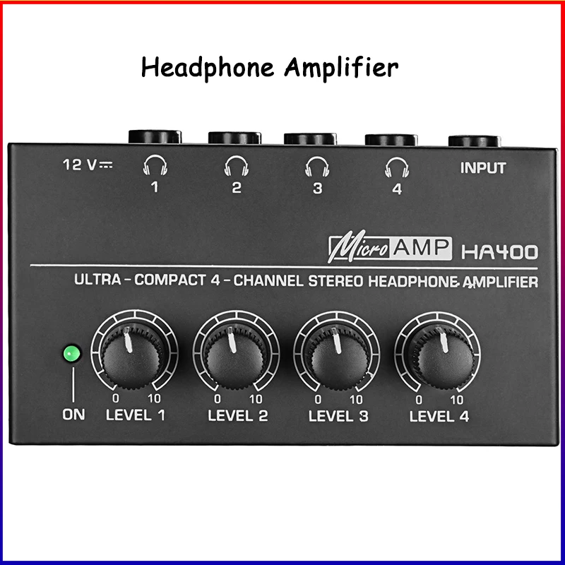 Ультракомпактный 4-канальный мини-стерео усилитель для наушников Ha400 с адаптером питания, черная вилка для СШАВеликобританииЕСАвстралии