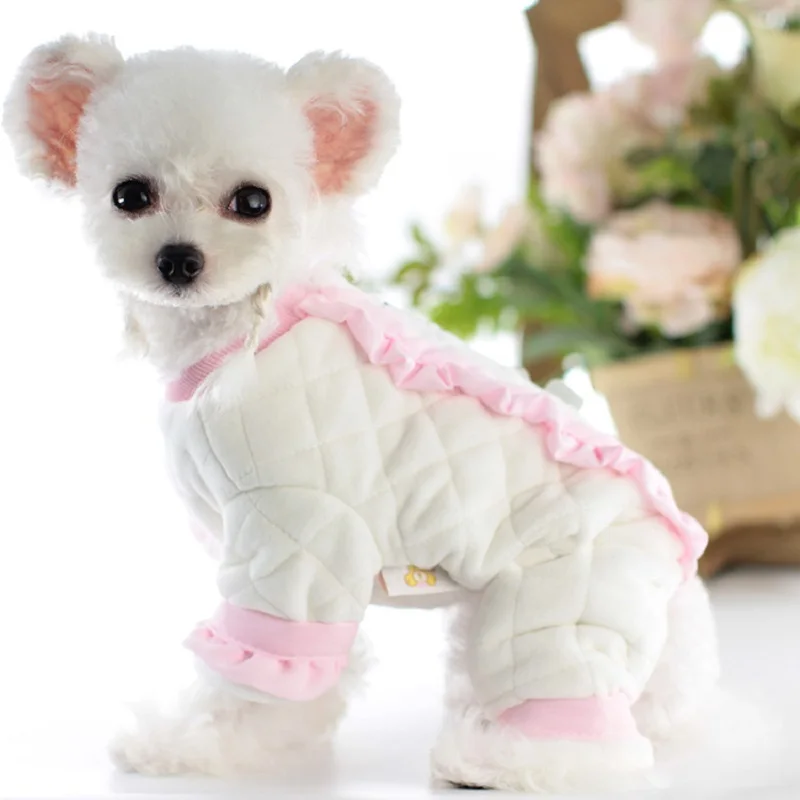 Зимний комбинезон из флиса, теплый милый комбинезон для собак с рюшами, одежда для щенков, соус, белый цвет
