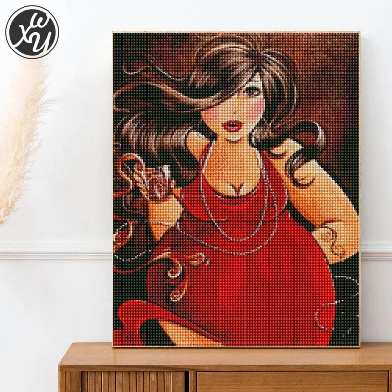 WEIWEI мультфильм 5D Сделай Сам алмазная живопись Толстая Леди полная квадратнаякруглая Алмазная вышивка крестиком наборы Алмазная мозаика вышивка для декора