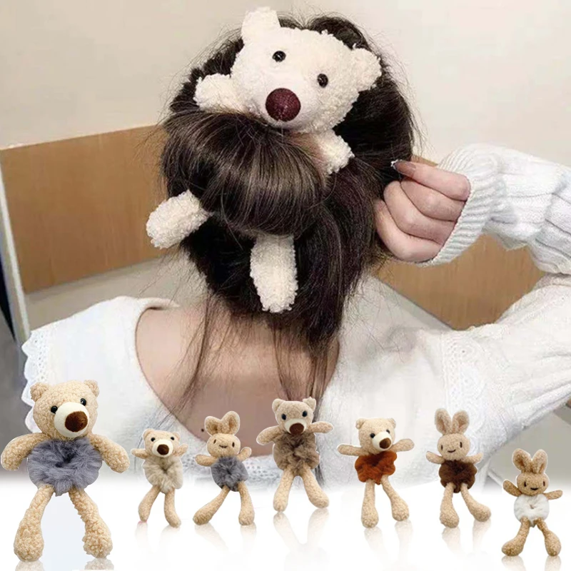 Резинка для волос женская, плюшевая, с медведем и кроликом, декоративная, новые головные уборы