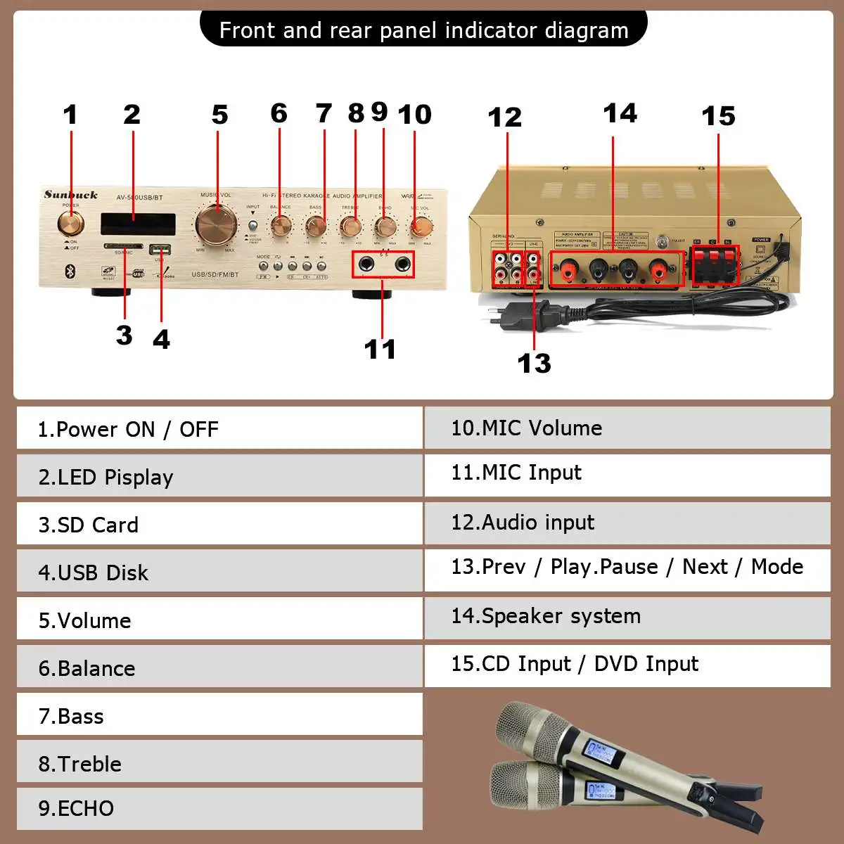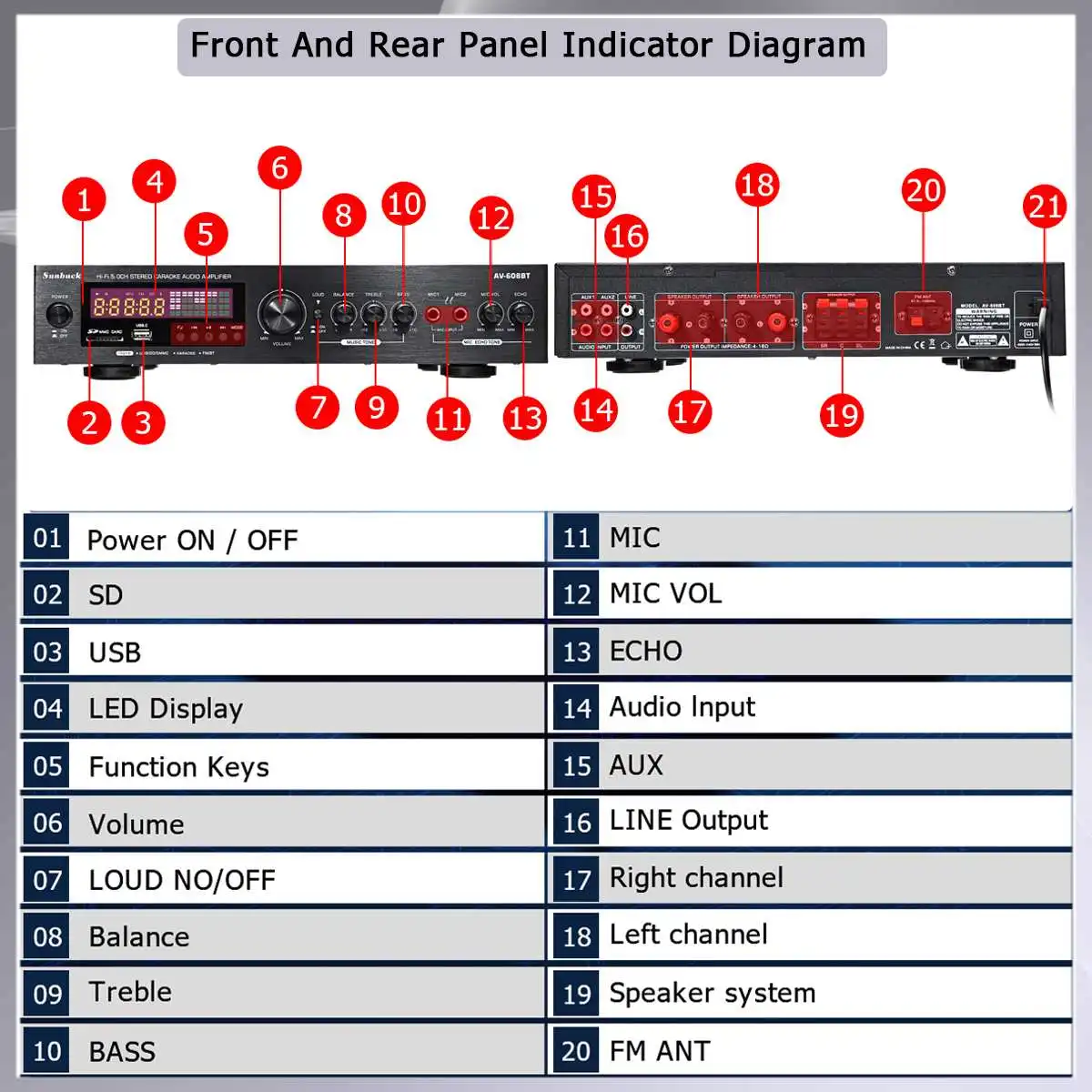 4. Двусторонний вход для караоке с микрофоном,Функция регулировки эффекта цифрового реверберации.