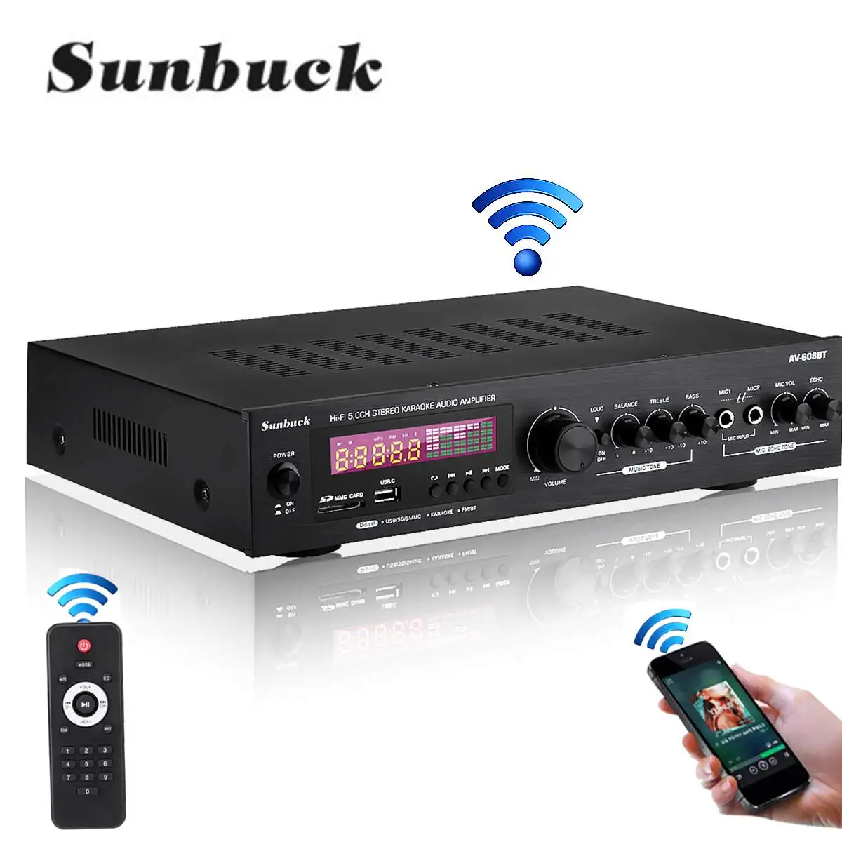 2000 Вт 5-канальный bluetooth 5,0 FM Hi-Fi стерео усилитель, СВЕТОДИОДНЫЙ Цифровой караоке, домашний кинотеатр, усилитель мощности 2000 Вт