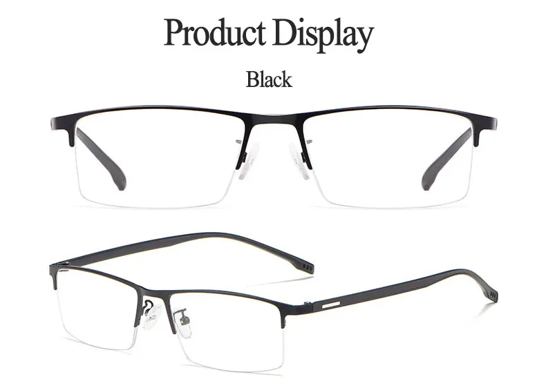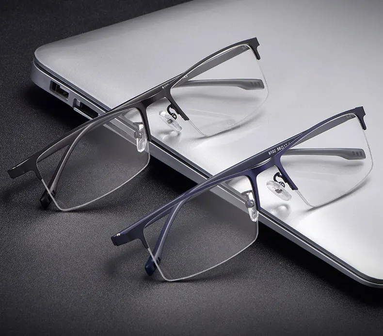 Ультралегкие мужские очки с металлической оправой в деловом стиле, Полуободковые искусственные очки с пружинными петлями, Лидер продаж