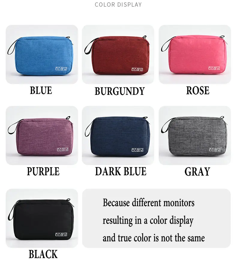[Спецификация] [Цвет]: винно-красный, фиолетовый, серый, черный, небесно-голубой, темно-синий, розово-красный [Материал]: полиэстер [Размер]: около 22x15x7,5 см (8,66x5,9x2,95 дюйма) [Особенности] - 1. Водонепроницаемая ткань, гладкая молния-2. Эта сумка может держать все ваши органайзеры для макияжа, кисти для макияжа, косметику, Зубная щетка, зубная паста, линия по уходу за кожей, дорожные бутылки и все остальное, что вам нужно, когда вы путешествуете-3. Сумка с подвесным крючком, которая может держать все туалетные принадлежности в вертикальном положении, обеспечивая легкий доступ при подвешивании на задней части любого стула, кровати, штор, душевой штанги, На самом деле, где бы вы ни хотели [посылка включена]: 1 косметичка (Примечание)-1. Из-за различных партий продукции детали продукта могут немного отличаться. Если вы хотите узнать разницу, пожалуйста, покупайте внимательно. -2. Допускается погрешность в 1-3 см из-за ручного измерения. -3. Из-за различных дисплеев и различного светильник, изображение может не отражать фактический цвет товара. Спасибо за понимание.