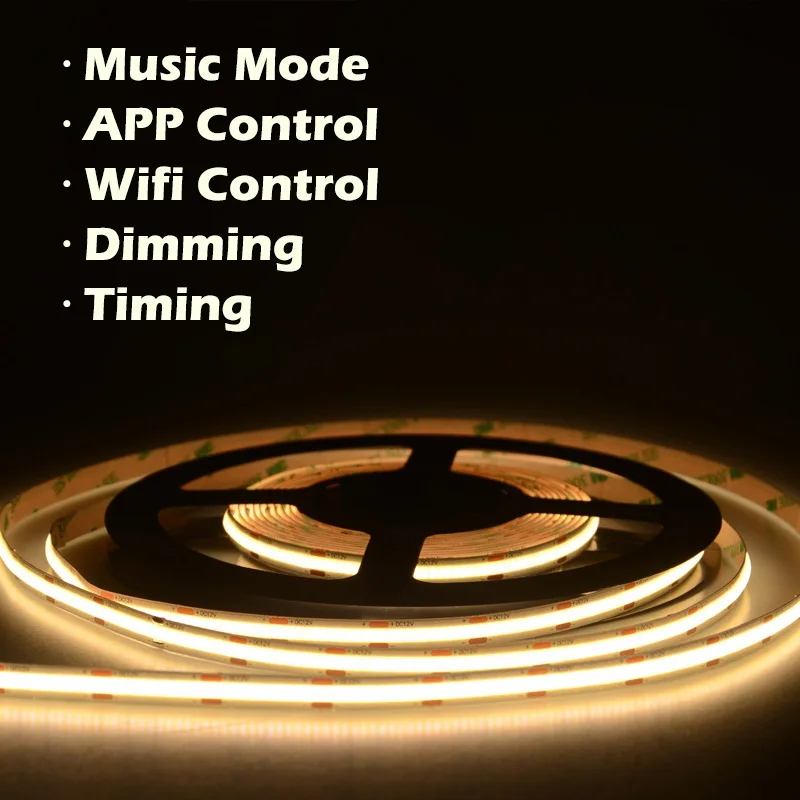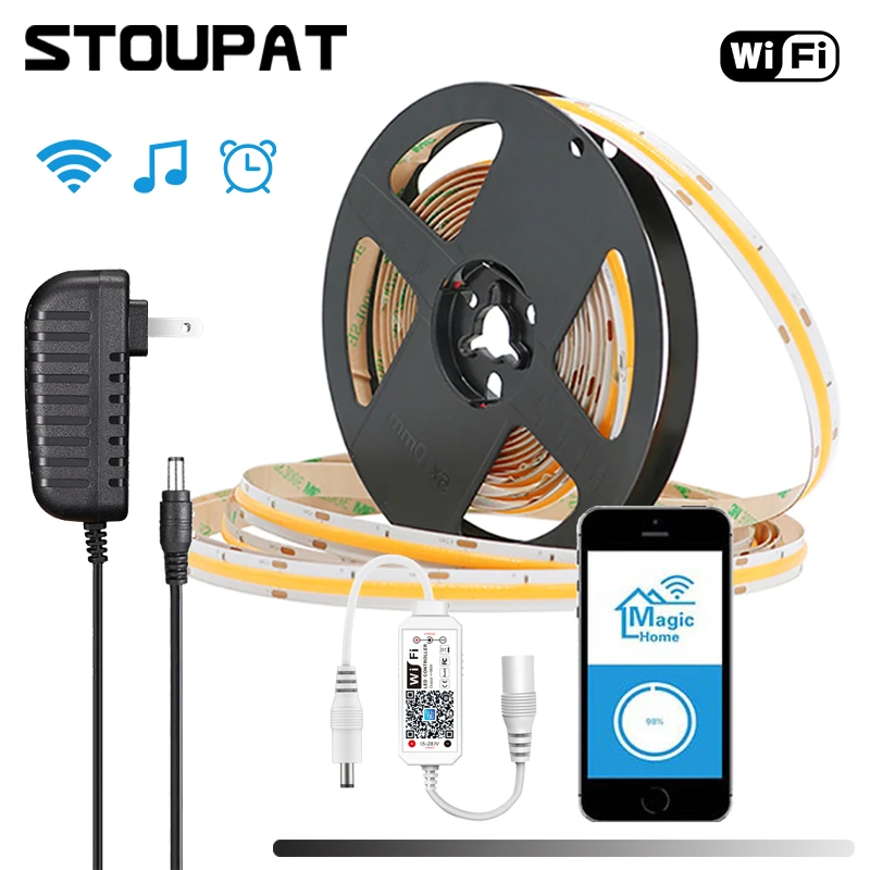 COB светодиодные ленты с регулируемой яркостью, WIFI, полный набор, гибкая лента для FOB, ленты для спальни, теплый, естественный, холодный белый, DC12V