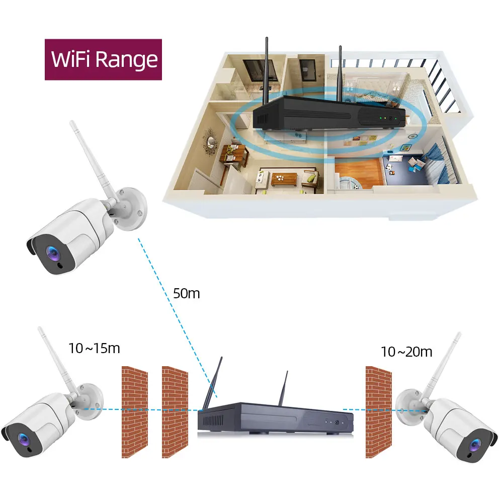 Беспроводные соединения между камерами и NVR, беспроводная передача до 50 метров (без препятствий)