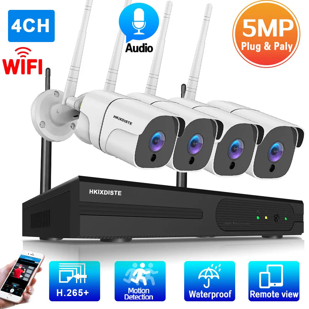IP-камера видеонаблюдения HD, 5 МП, 4 канала, Wi-Fi, NVR