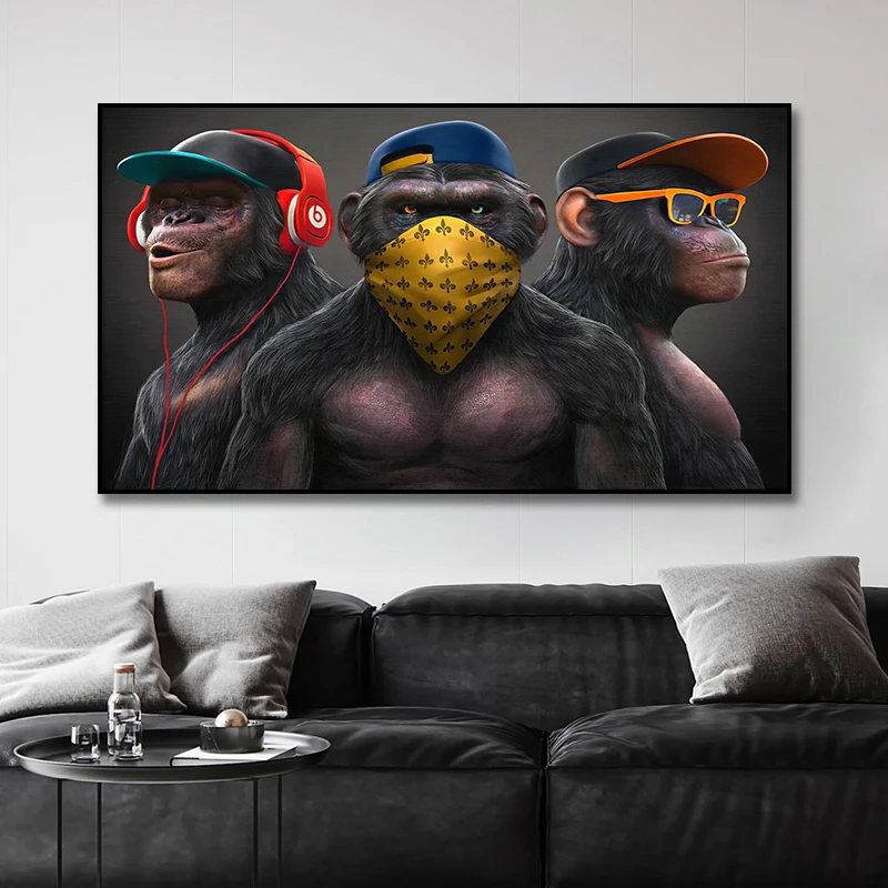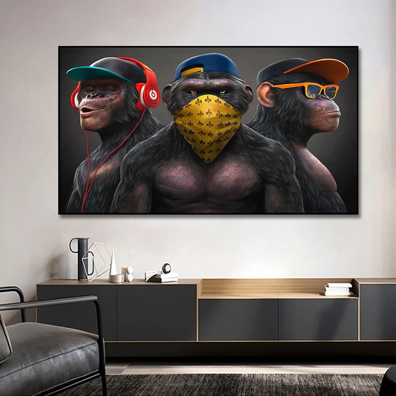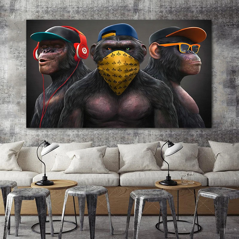 Постер с 3 обезьянами, классное граффити, уличное искусство, Картина на холсте, настенное искусство для гостиной, домашний декор, плакаты и принты, украшение на стену