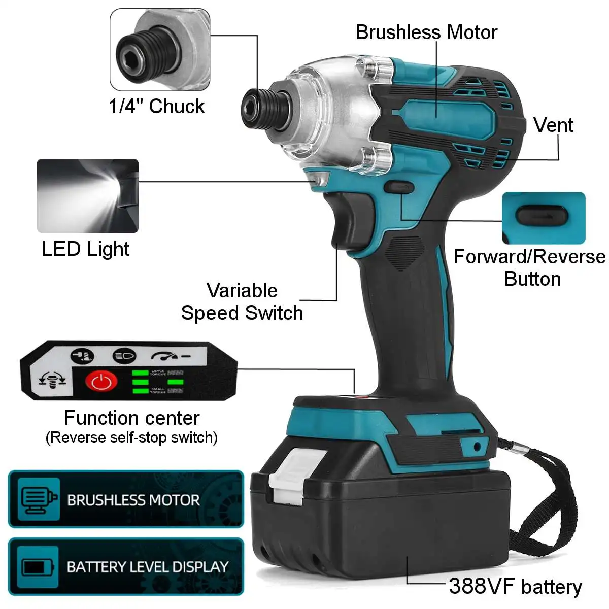 18 в 800N.m. Литий-ионный 1/4 ''бесщеточный беспроводной отвертка