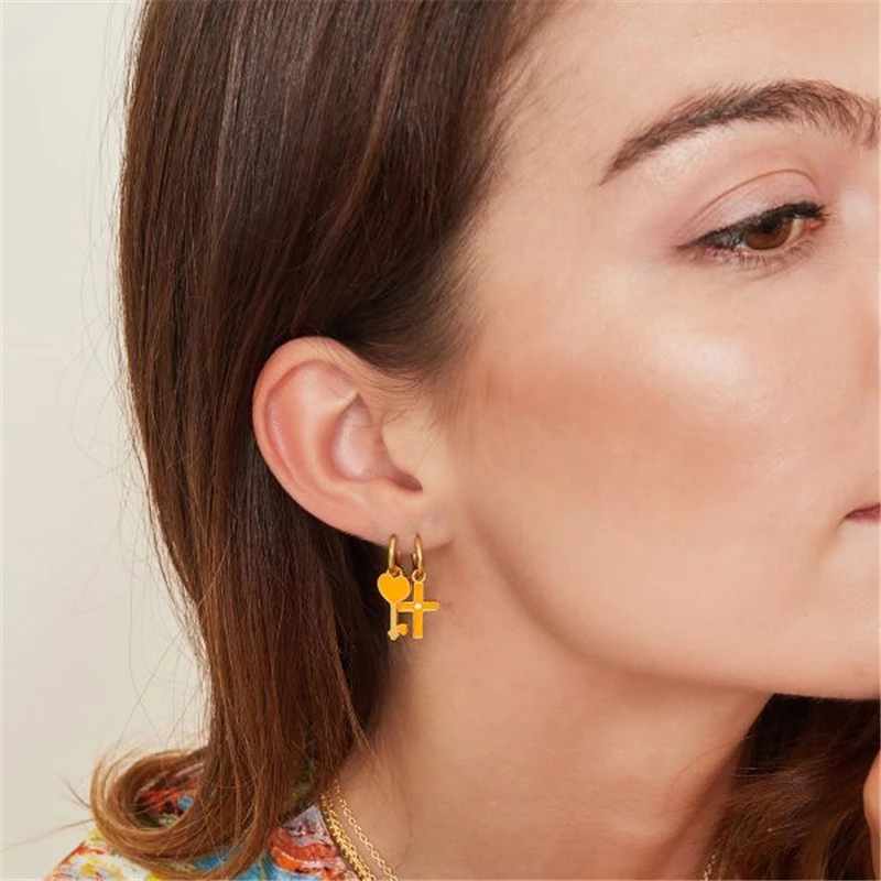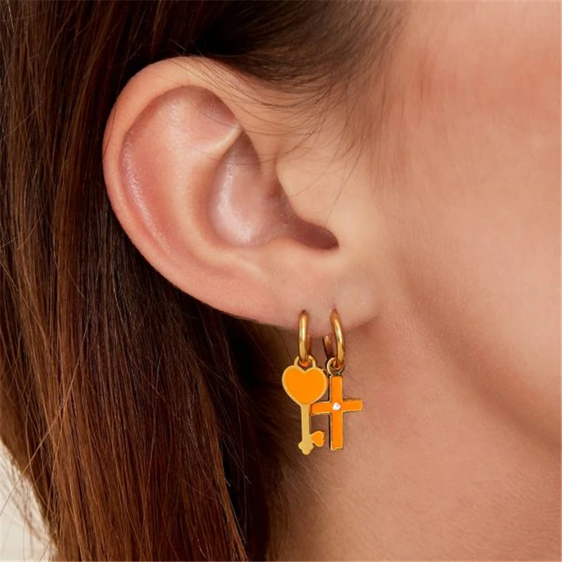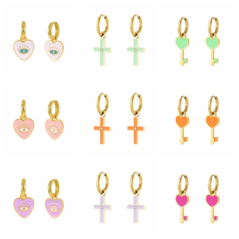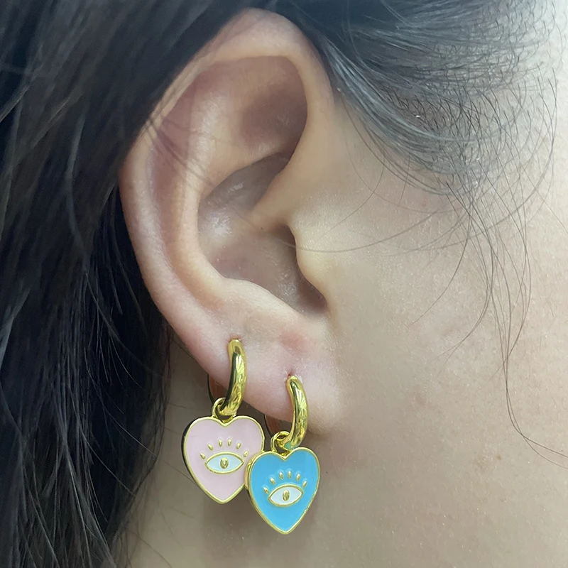 Женские серьги-гвоздики с эмалью, в форме сердца
