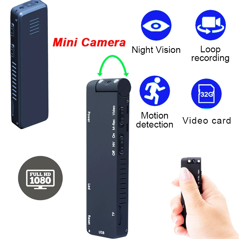 Характеристика:1. Обнаружение движения, выключение Видео-светильник, покрытие петли, запись боковой зарядки, время изменения2. Функция фонарика/Встроенный магнит для легкой адсорбции/180 Поворот объектива на 170 градусов3. Объектив: 991424. Разрешение записи: 1920*1080P Частота кадров: 30 кадров в секунду Стандартные аксессуары:1 мини DV1 x Описание пользователя1 х USB кабель для передачи данных Обратите внимание: Отдельная камера этого продукта не имеет карты памяти.