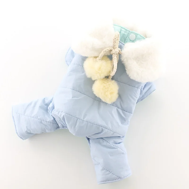 Winter Jumpsuit for Dogs Soft Reversible Warm Neck String Ball Pet Clothes Pink Blue Teddy Costume XS S M L XL