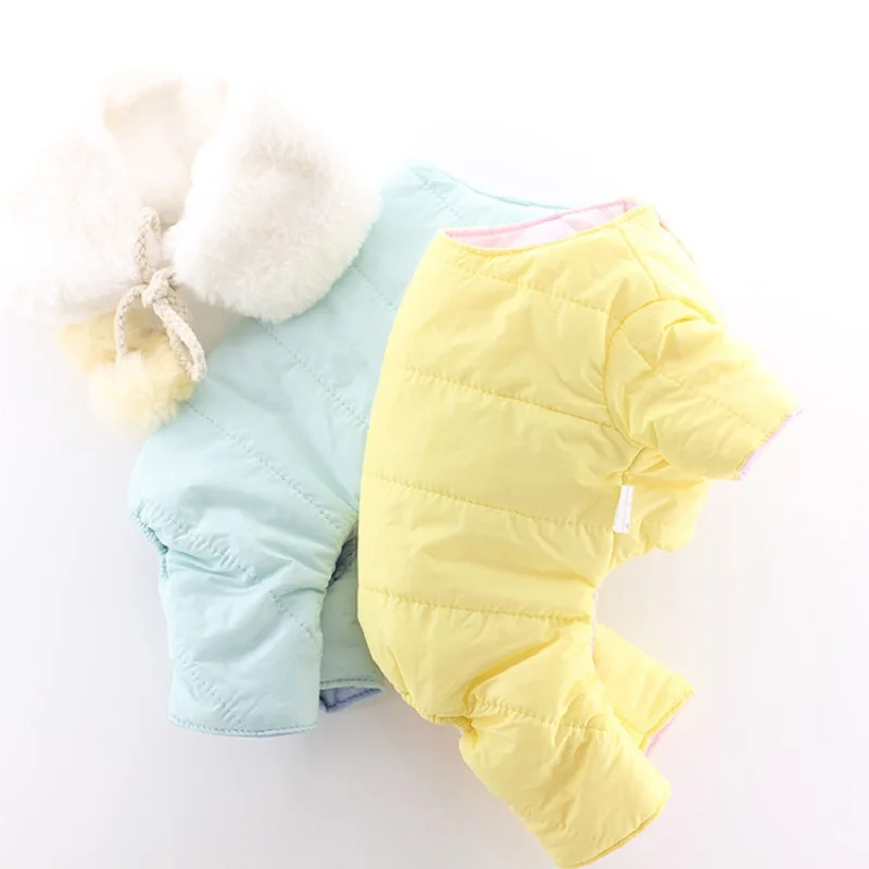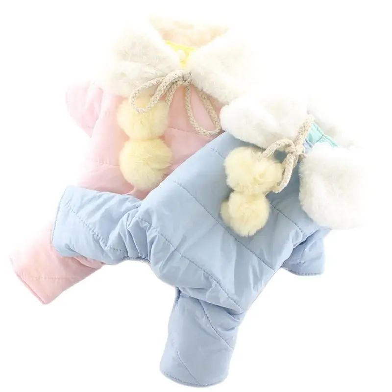 Зимний комбинезон для собак, Мягкая двусторонняя теплая одежда для домашних питомцев с воротником-шнурком и мячом, Розовый, Синий Костюм Тедди XS S M L XL