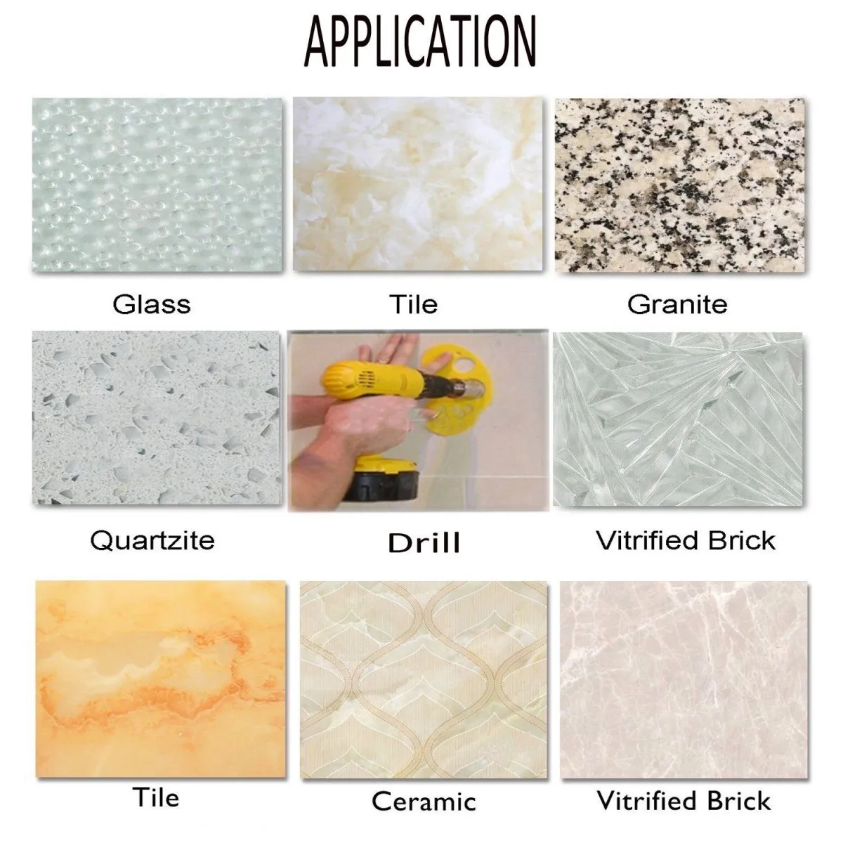Особенности:-100% новый и высокое качество.-- Это сверло с алмазным покрытием удаляет полный круг из стекла, плитки, мрамора, гранита, керамики или другого.-- Материалы и нужна только вода для смазки.-Всегда используйте смазку (воду), в противном случае сверло с алмазным сердечником будет гореть.-- Может использоваться со стандартным электродрилем.-- Начните отверстие по диагонали, сделайте круглый трек, а затем удерживайте сверло прямо.