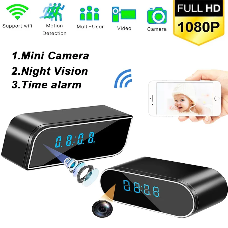 Беспроводная мини-камера 1080P, WIFI, часы, IP-видеокамера, ночное видение, датчик движения, удаленный просмотр для детей и семьи