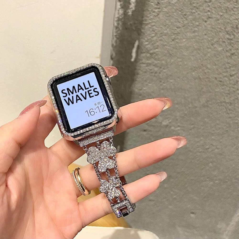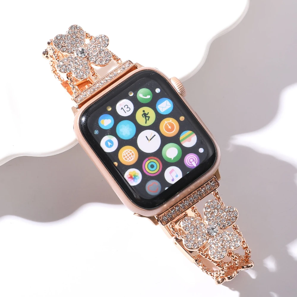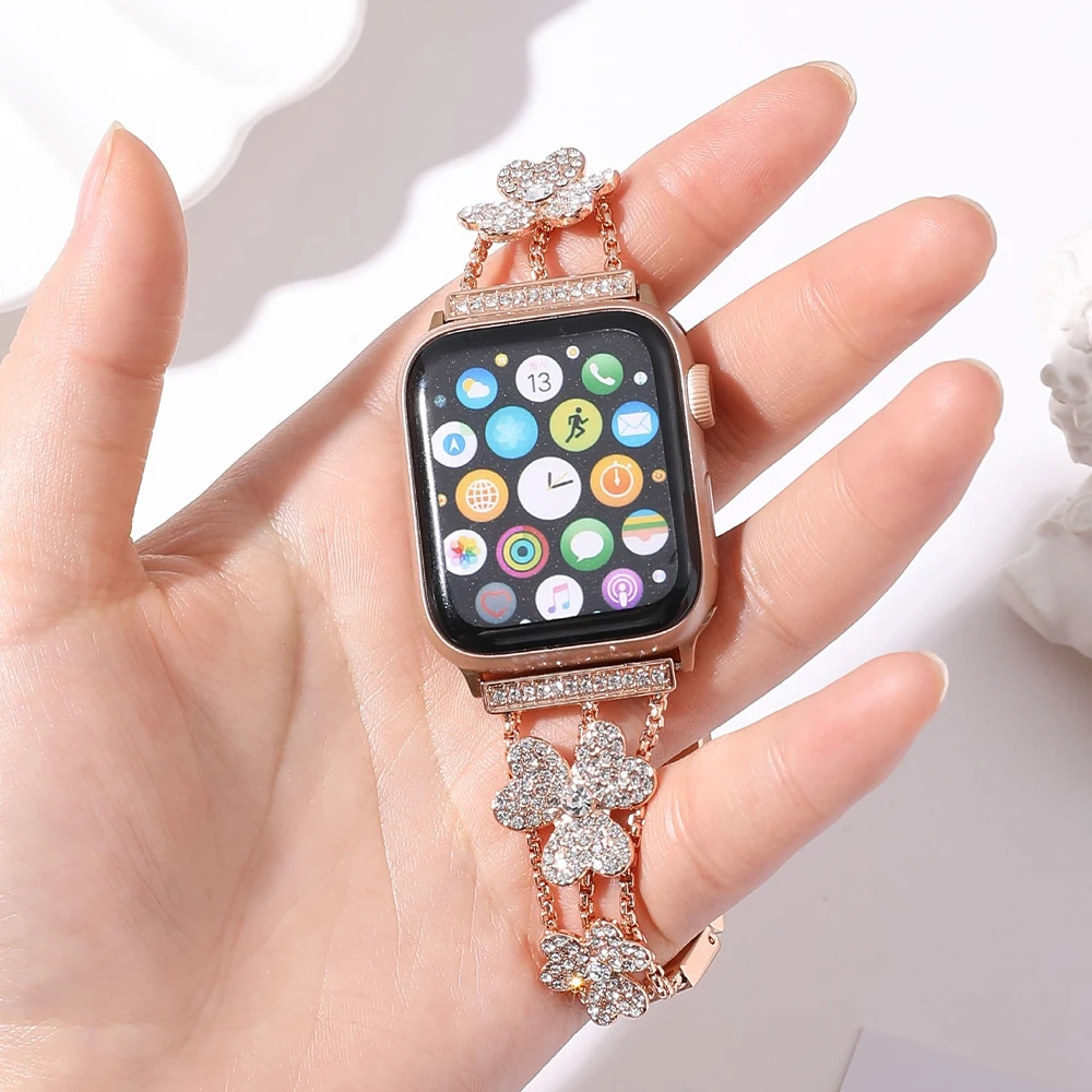 Браслет женский из нержавеющей стали, совместим с Apple Watch Band 44 40 38 42 мм, с алмазной бабочкой для iwatch Series SE 6 5 4 3 2 1
