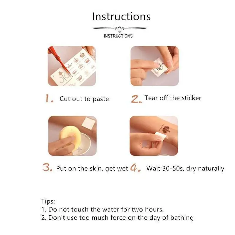 Сухая кожа с дизайном лицом вниз, нажмите влажную ткань/губку против татуировки и удерживайте в течение 30 секунд.