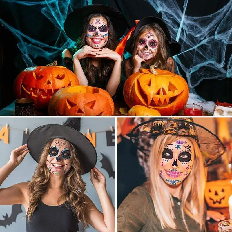 Высококачественный материал:Макияж сахарного черепа водонепроницаемый, приятный для кожи и съемный, длится 2-5 дней.