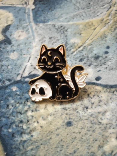 Волшебная ведьма, скелет, кошка, эмалированная булавка, шляпа котен...