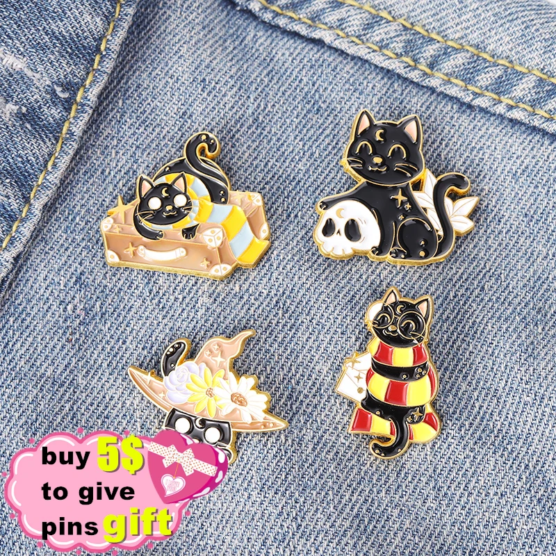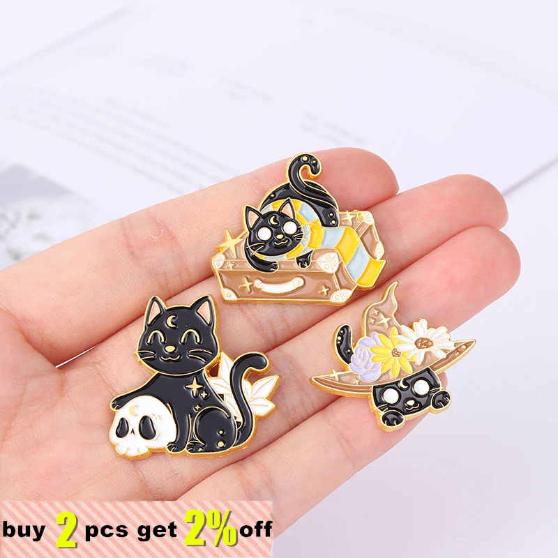 Эмалированная булавка в виде черной кошки, ведьмы, изготовленная на заказ, цветочные Волшебные броши для шляпы для женщин, искусственная сумка, одежда, булавка для лацкана, ювелирные изделия, подарок, оптовая продажа