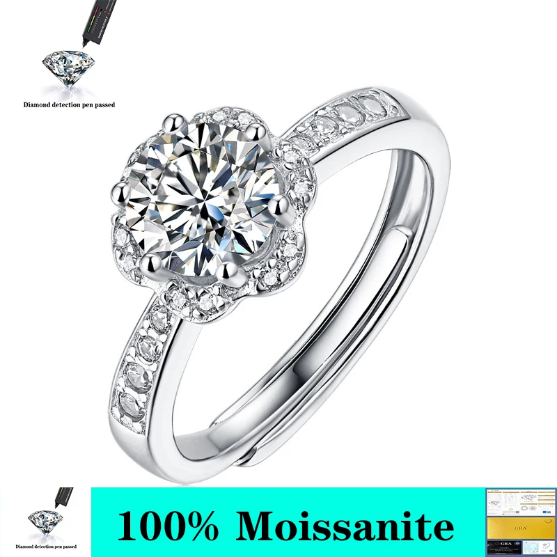 Женское Обручальное кольцо с муассанитом, регулируемое кольцо из серебра 925 пробы с покрытием из белого золота 18 К, карат-3 карата