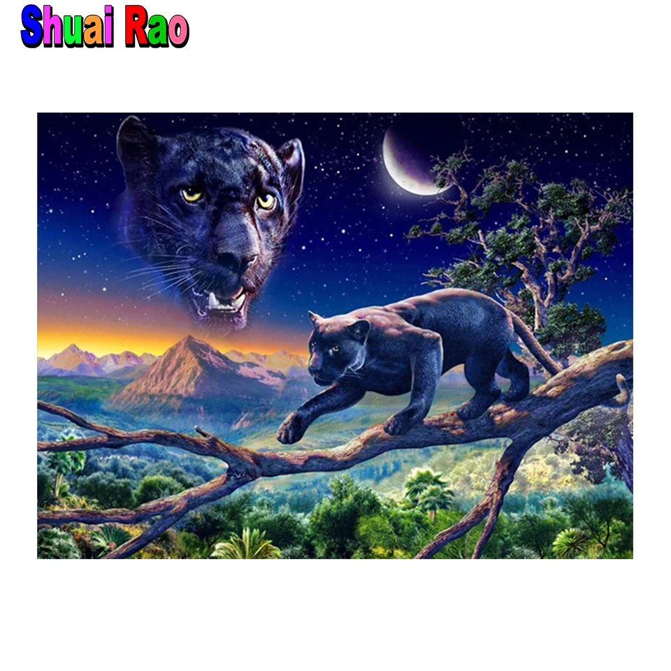 Лунная пантера черный леопард 5d diy алмазная живопись полный квадрат/круглая дрель Мозаика Искусство животное Алмазная вышивка домашний декор