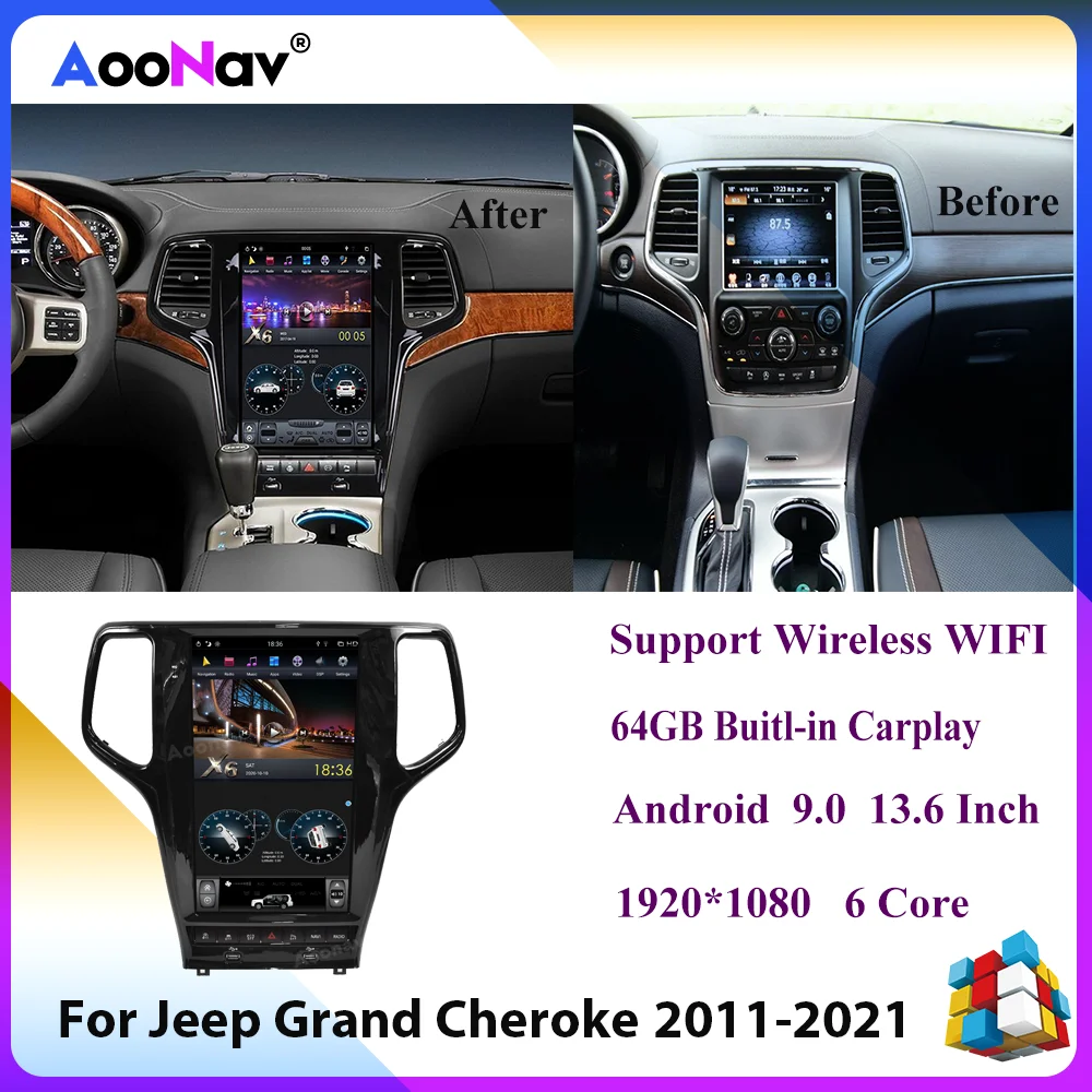 13,6 дюймовый Android GPS навигация Тесла стиль автомобильное радио для JEEP Grand Cherokee 2011 2012 2013-2021 автомобильный стерео Мультимедийный Плеер
