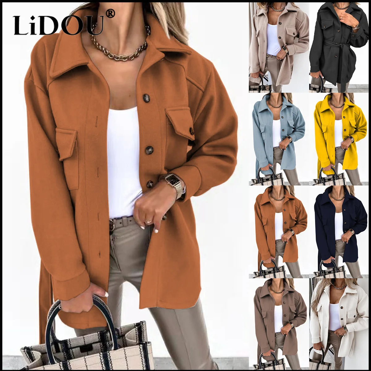 Женское повседневное шерстяное пальто с поясом, сезон осень-зима 20...