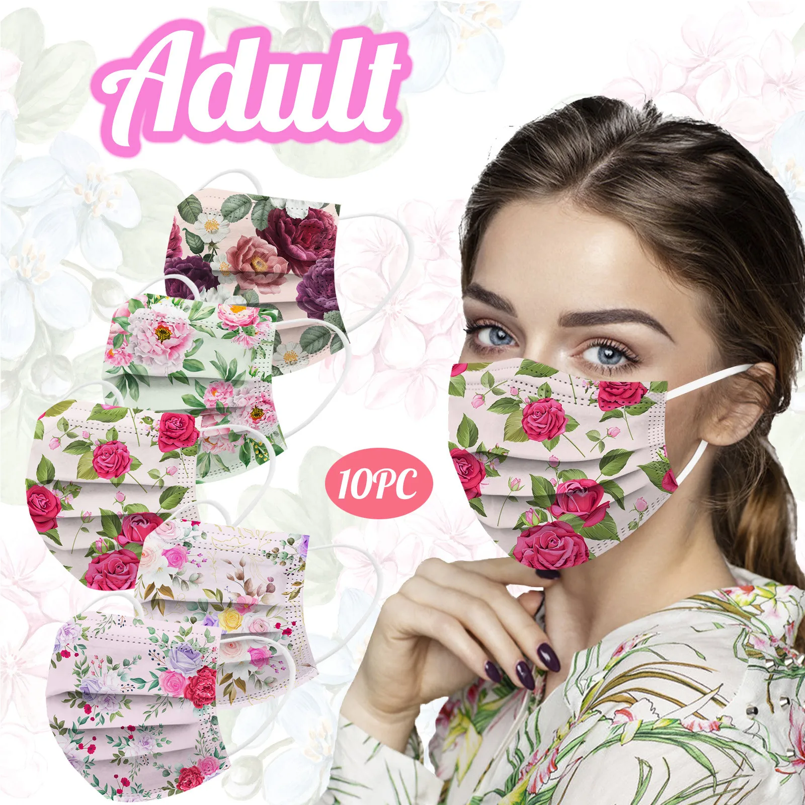 10 шт. одноразовые нейтральные маска с цветочным узором одноразовые Мягкая тонкая маска для взрослых 3-Слои маска