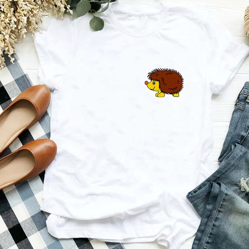 Женская футболка 2022, забавная кавайная мультяшная футболка с ежик...