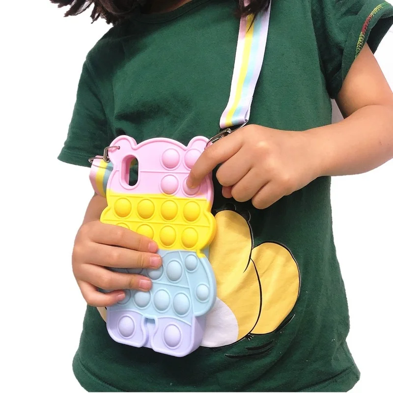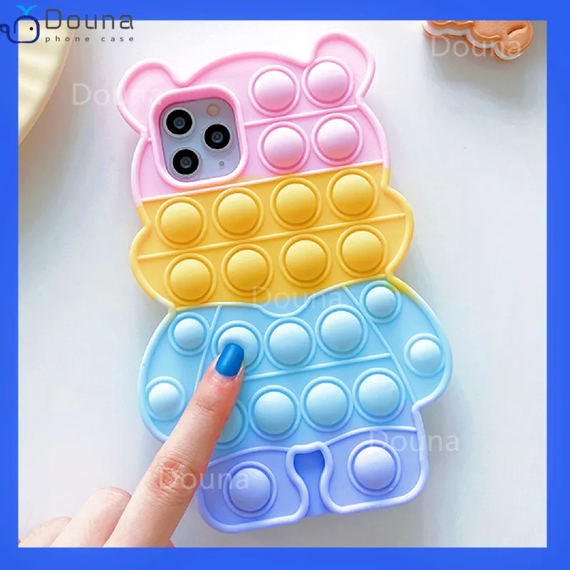 Популярный пузырьковый чехол для Xiaomi Redmi 9T Note 10 9 8 Pro Mi POCO M3, снимает стресс, фиджет, 3D мультяшный медведь, мягкий силиконовый Радужный чехол