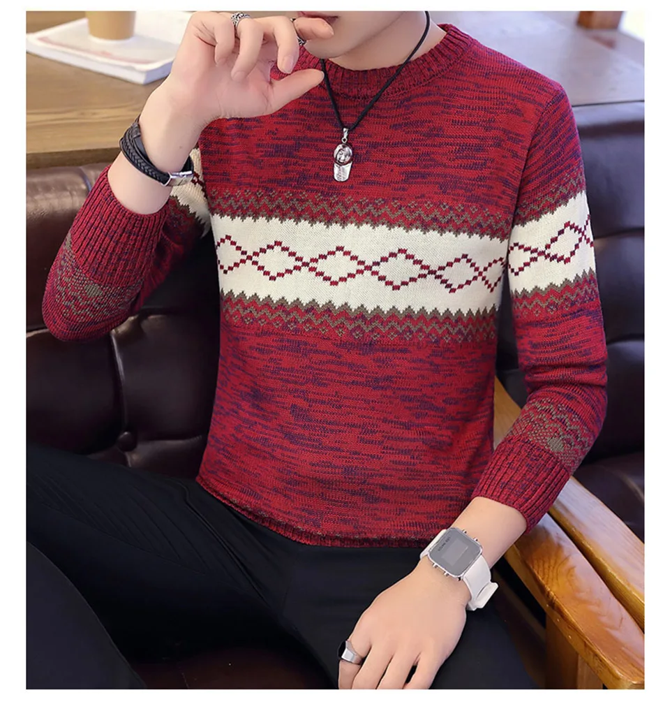 Свитер мужской, с круглым вырезом, зимний, теплый, с длинным рукавом, 3XL