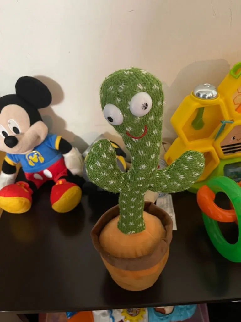 1. Забавные и милые плюшевые игрушки Кактус, можно танцевать, спеть, двигаться.2. Танцевальная игрушка-кактус может привлечь внимание детей и хорошо подходит для раннего образования.3. Эта танцевальная плюшевая игрушка С КАКТУСОМ, Электронная танцевальная кактус, раскалывает и поет веселые песни, создавая живую и теплую атмосферу в вашем доме, подарив вашему ребенку счастливое время в жизни.4. Электрический кактус танцующий кактус плюшевый идеальный аксессуар для украшения дома, вечерние, хорошо подходит для раннего детского образования. Танцующий кактус плюш в горшке забавная танцевальная кактус плюшевая игрушка, вязаный плюш, мягкий материал, удобный, безопасный. Протрите пыль влажной тканью для очистки.