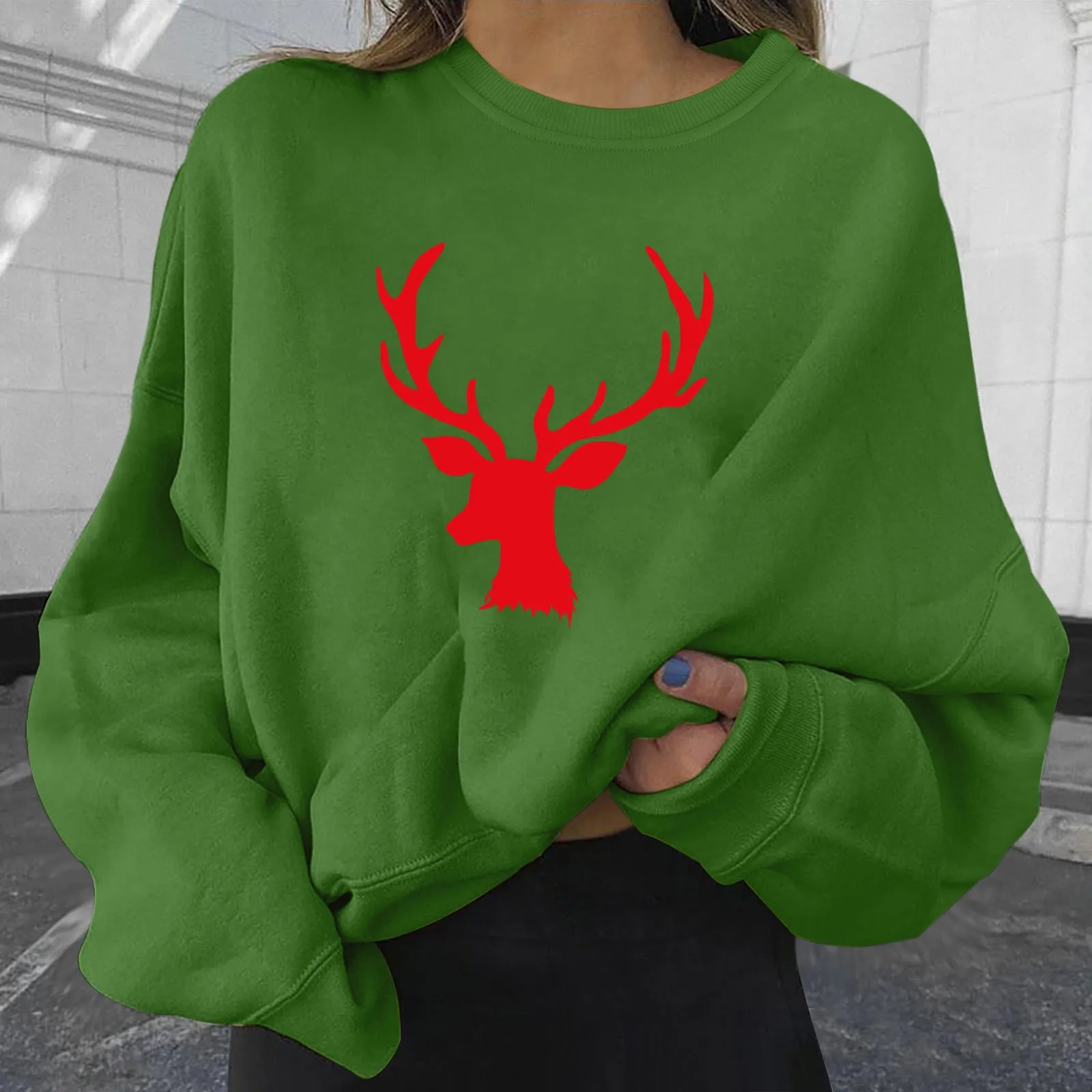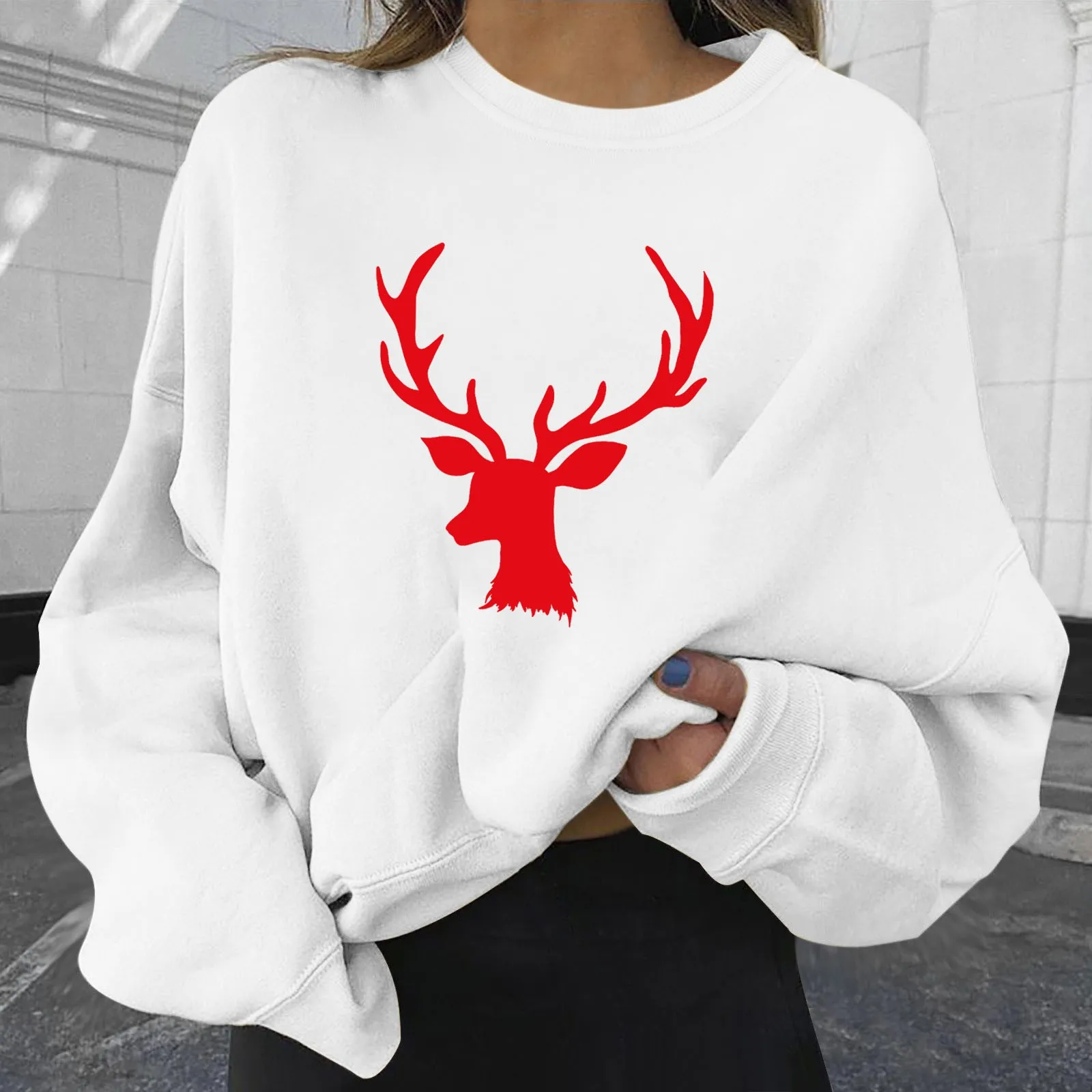 Свитшот женский оверсайз с принтом лося, Рождественская туника с длинным рукавом, топ с круглым вырезом, толстовки, пуловер, свободная блузка, уличная одежда 2021