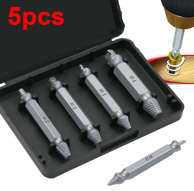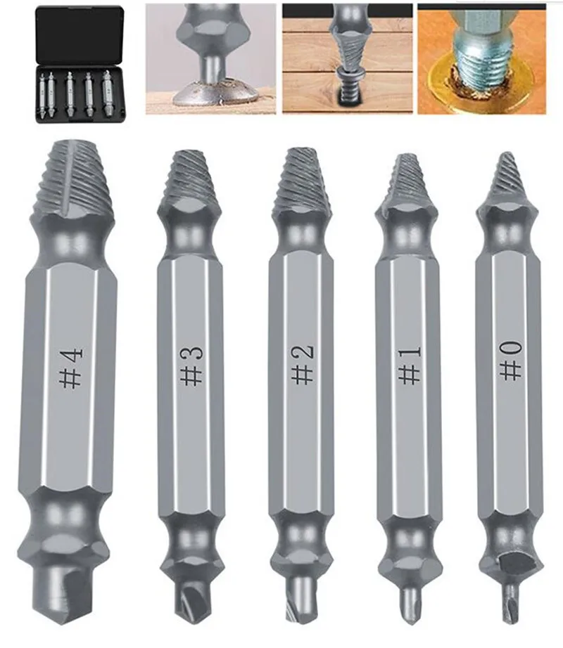 Экстрактор винтов, электрическая дрель, шуруповерт, инструмент для ремонта сломанной проволоки, 5 комплектов инструментов для удаления скользящих зубов с двойной головкой