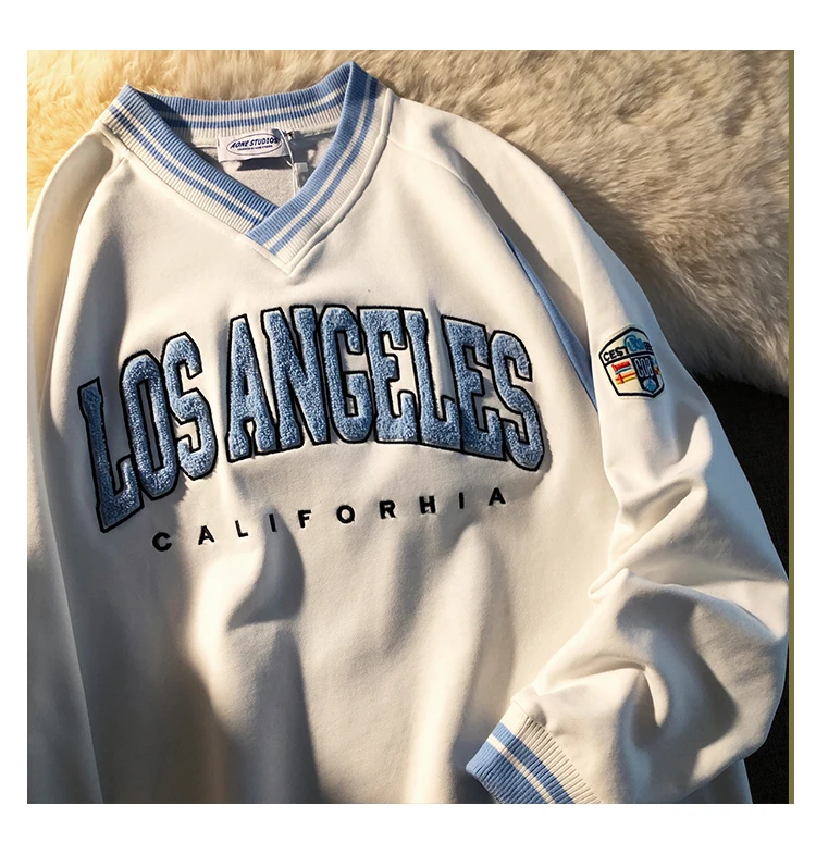 Толстовка с вышивкой в стиле ретро, Harajuku, с V-образным вырезом,...