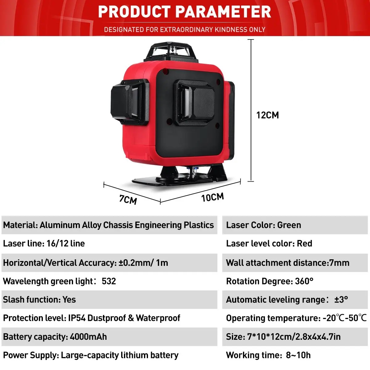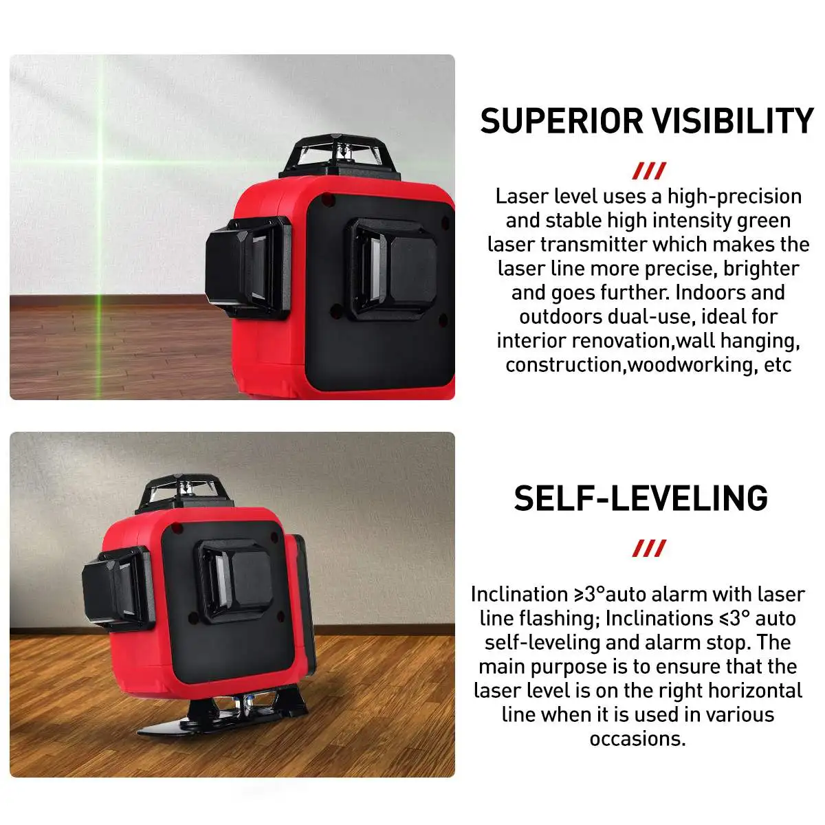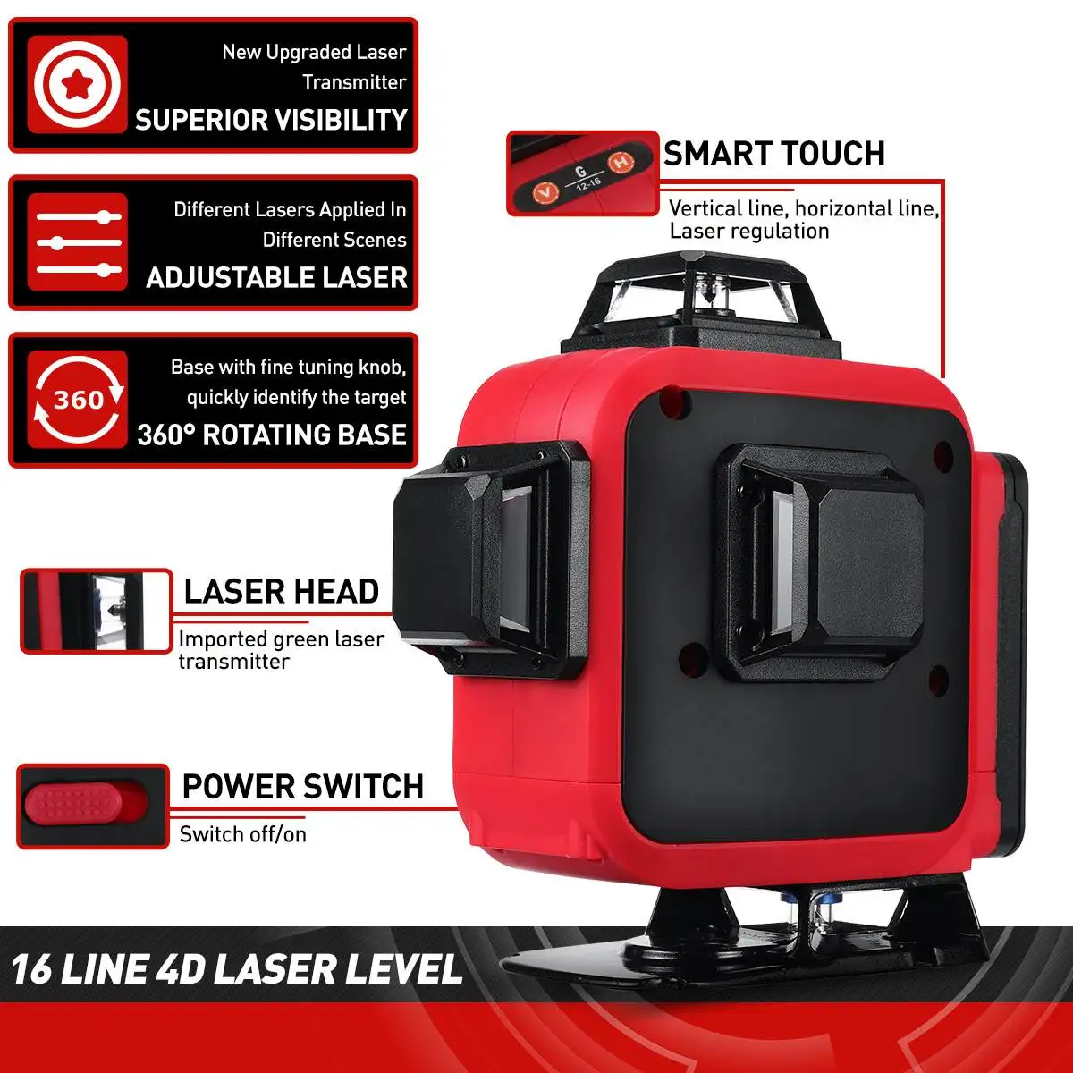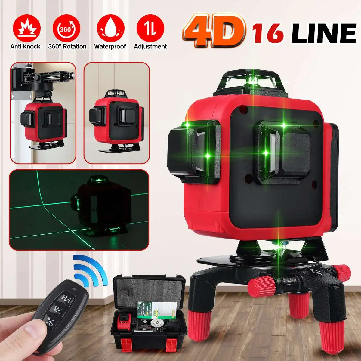 Лазерный уровень с 1612 линиями 4D, зеленый луч, сверхмощный горизонтальный и вертикальный лазерный уровень с 360 горизонтальными и вертикальными линиями, лазерный уровень с зеленым лучом