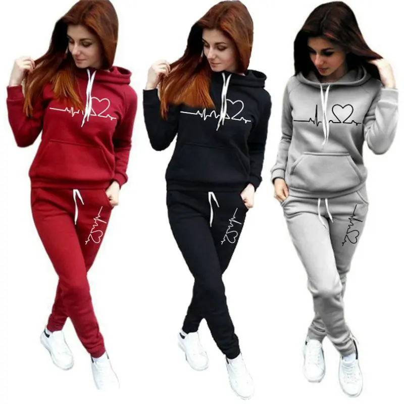 Женский спортивный костюм, элегантный комплект из 2 предметов, зимний теплый свитер с капюшоном, женский теплый свитер с капюшоном и набор длинных брюк