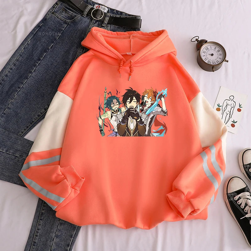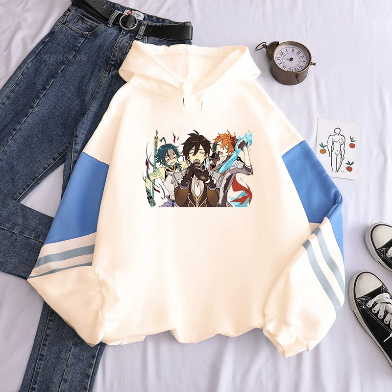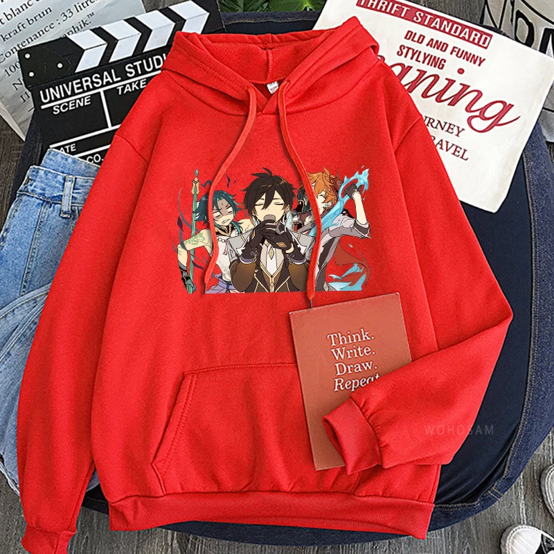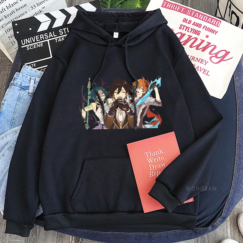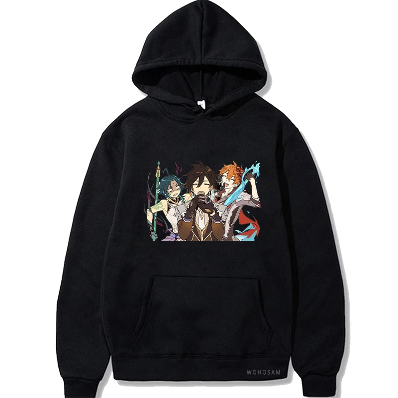 Толстовка мужская с капюшоном, смешная игра геншин ударт Чжун ли Сяо, мультяшный аниме постер в стиле Харадзюку, зимний Повседневный свитшот с капюшоном, топы