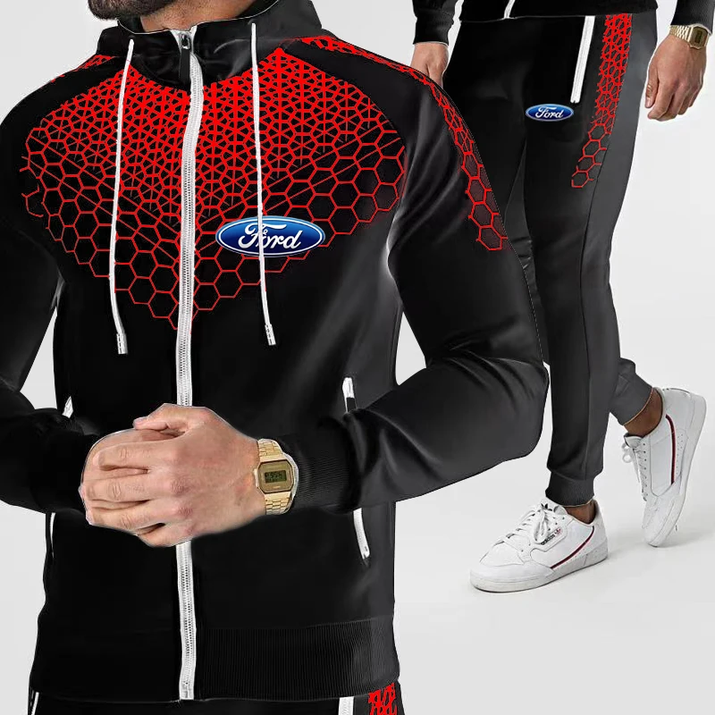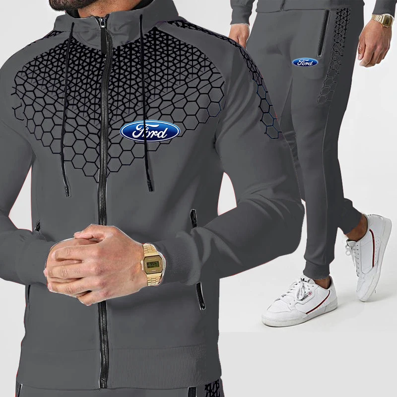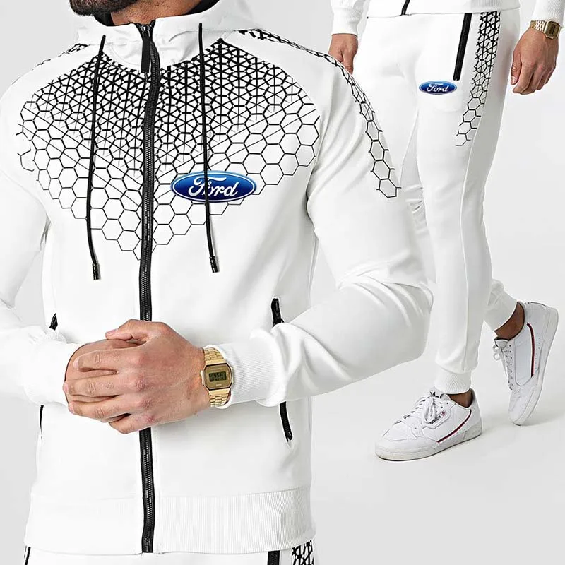 Мужская одежда Новинка весна-осень мужской спортивный пиджак костюм градиентный принт с логотипом Ford мужской свитер с капюшоном + брюки Модная