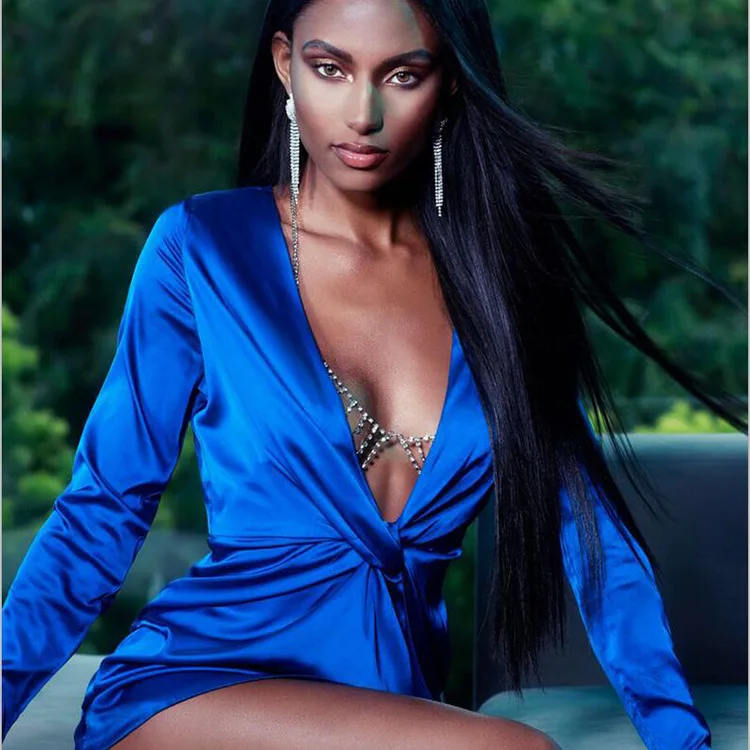 Женское атласное мини-платье с глубоким V-образным вырезом, Коротко...