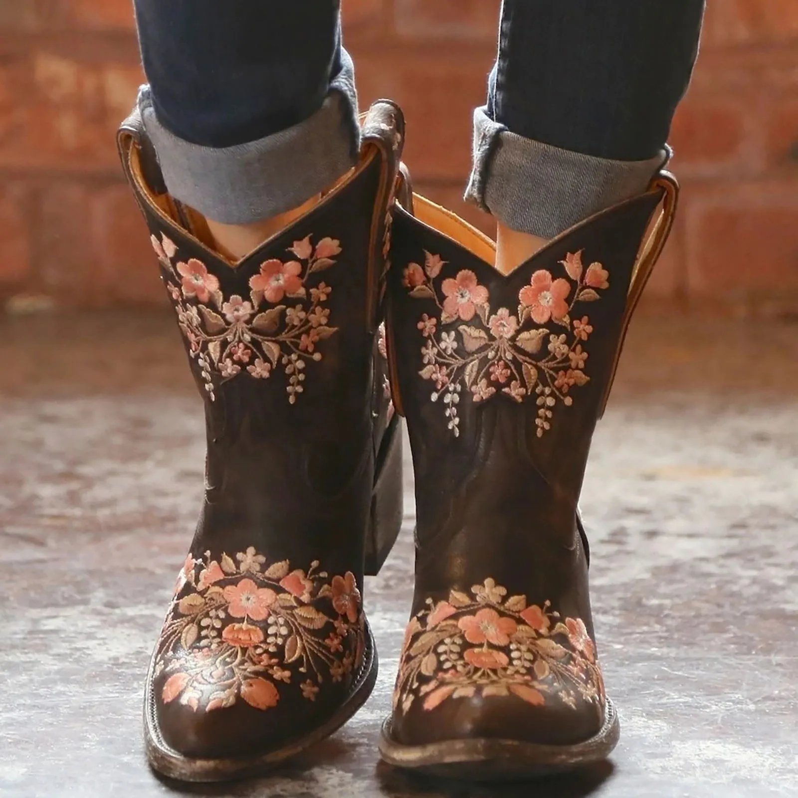 Осенние удобные сапоги до середины икры на среднем каблуке с вышивкой в стиле ретро женские сапоги