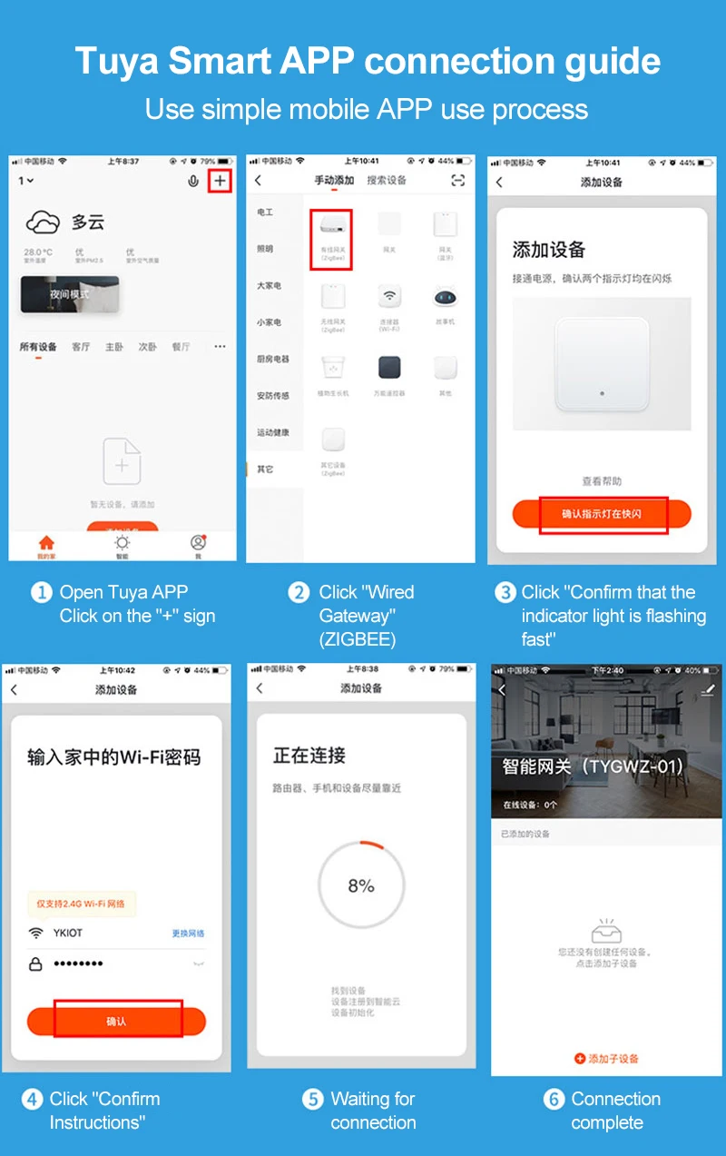 Сеть связи Zigbee, поддержка 30 + устройств онлайн одновременно. Коммуникация Zigbee имеет преимущества низкого энергопотребления и стабильного сигнала. Он может одновременно установить 30 + подустройств и создать специальную сеть. Устройство может автоматически повторно подключаться к сети после его перемещения. Удовлетворение умных потребностей обычных семей.