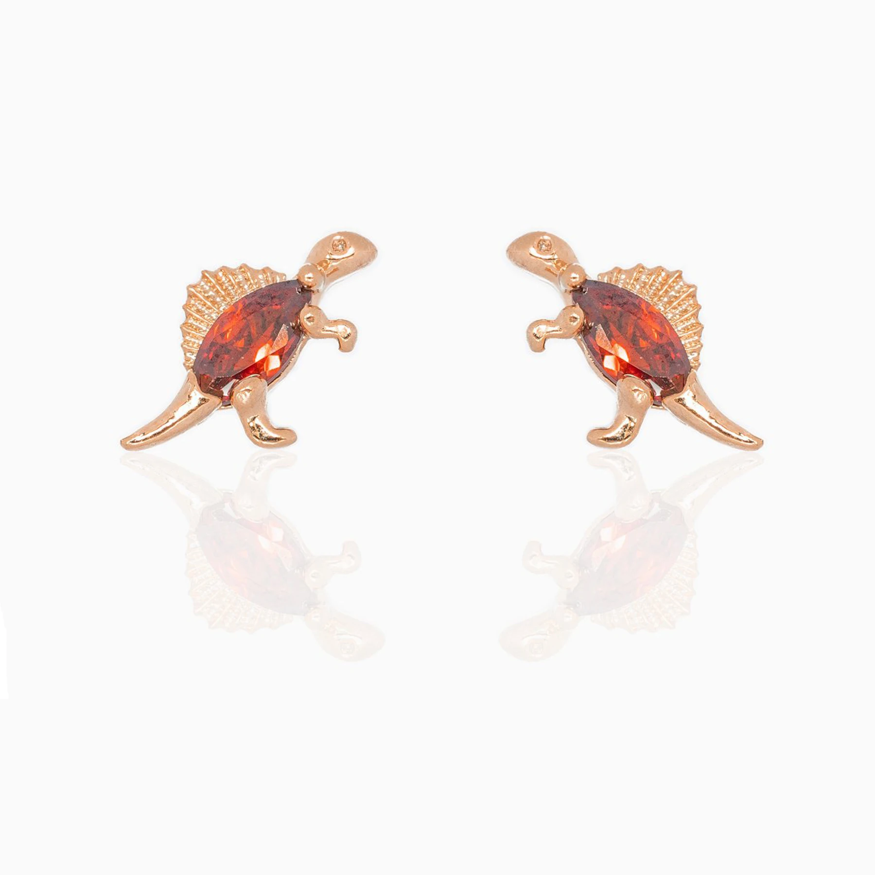 Пара сережек-динозавров Трицератопс для женщин 18 К позолоченный бр...